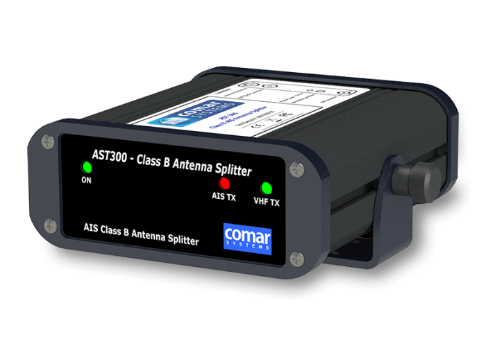 The AST300 AIS / VHF Antenna Splitter allows your existing VHF antenna to be used by both a VHF Radiotelephone and an AIS Transponder or AIS Receiver. The AST300 also includes an output antenna connection for FM broadcast receivers, providing a third use for your existing VHF Antenna.